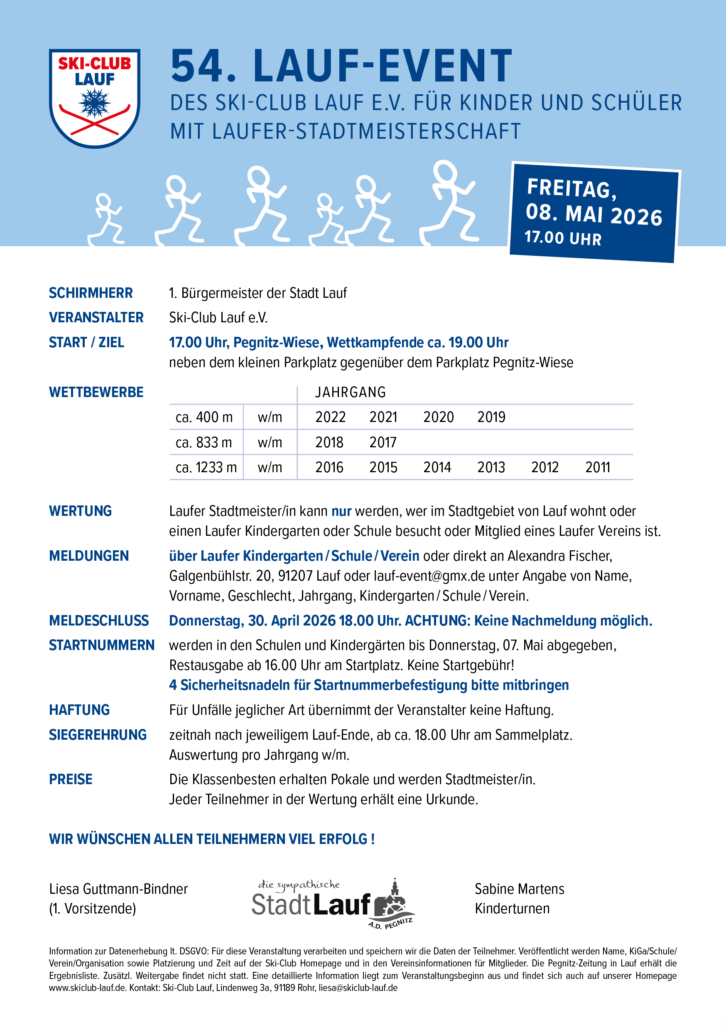 Die Anmeldung läuft über die Laufer Kindergärten und Schulen bzw. siehe Ausschreibung.