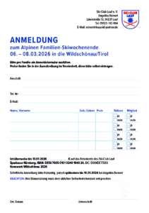 Anmeldung bis spätestens 14.12.2025 per E-Mail an Liesa Guttmann-Bindner, liesa@skiclub-lauf.de, mit Vorname, Name, Geburtsdatum.